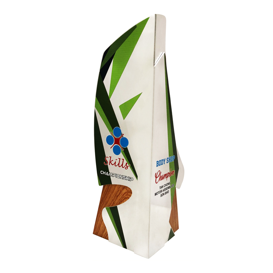 is an exclusively designed wooden plaque with a modern design touch and quality material that pairs the colours and stereoscopic plaque's shape. Providing the trophy elegance and ensuring a great awarding momento.