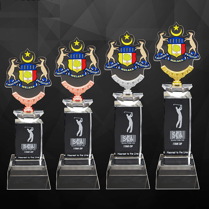 9264 Exclusive Crystal Trophy With Acrylic Medal the acrylic momento made by using laser technology to provide elegance in display.